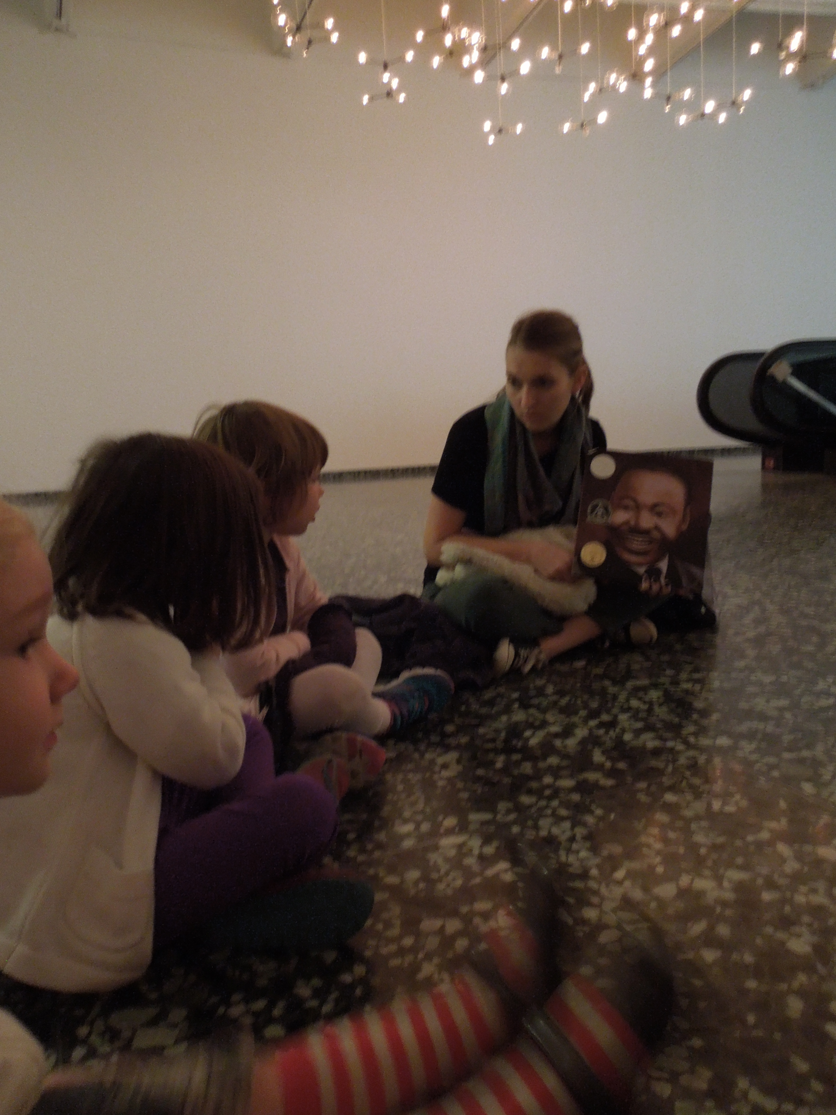 She then explained that the dream that Elvis was describing in his song is his hope for everyone to get along in the future. Rebecca then introduced Martin Luther King who also had big dreams and read Martin’s Big Words: The Life of Dr. Martin Luther King, Jr. by Doreen Rappaport. Rebecca ended the lesson by asking the children to share their big dreams for the future. One child said “I want to be a great big huge chef that feeds everyone in the whole word.”