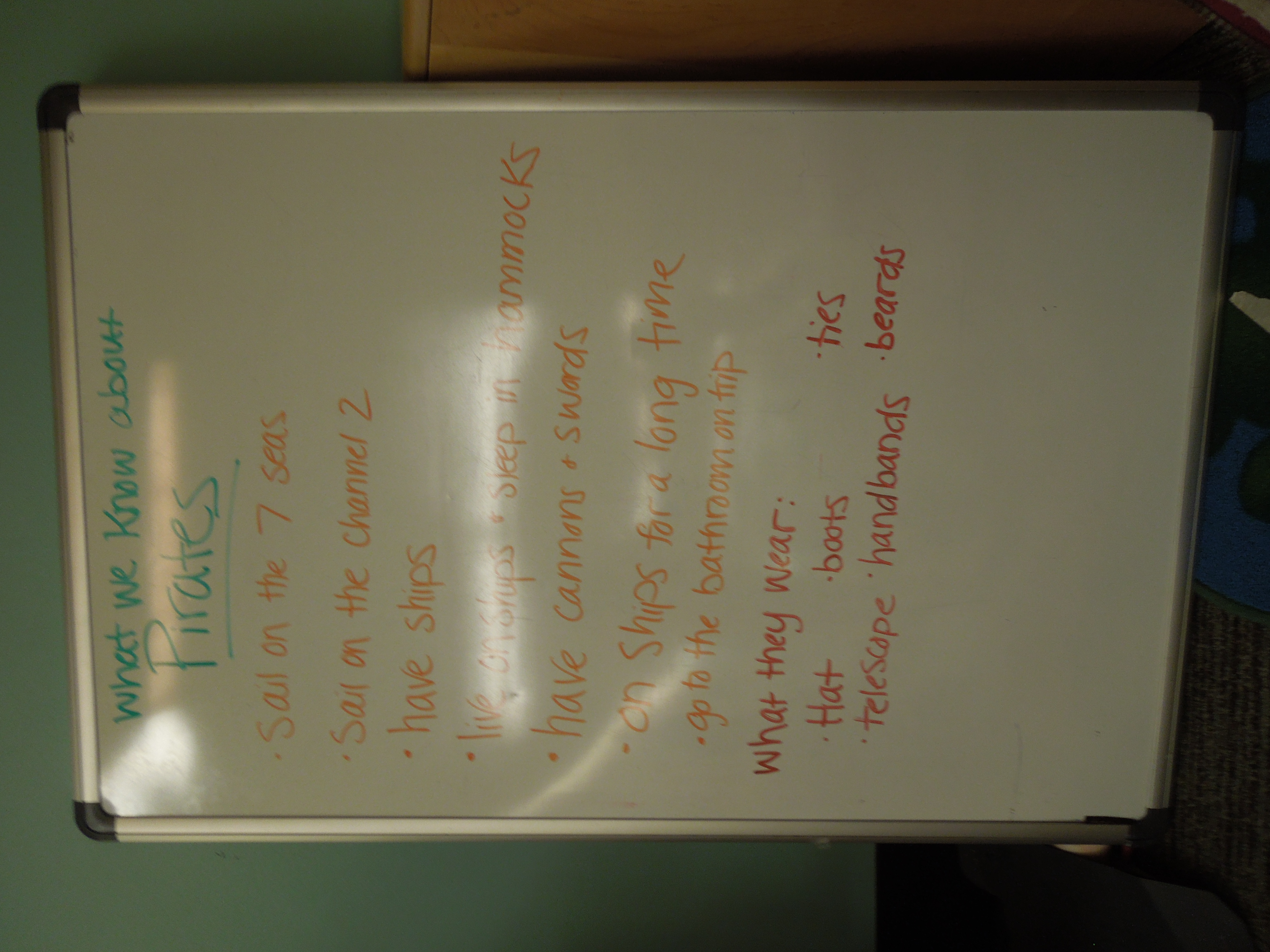 This is the list of things the group came up with (even pirates need to go potty!).