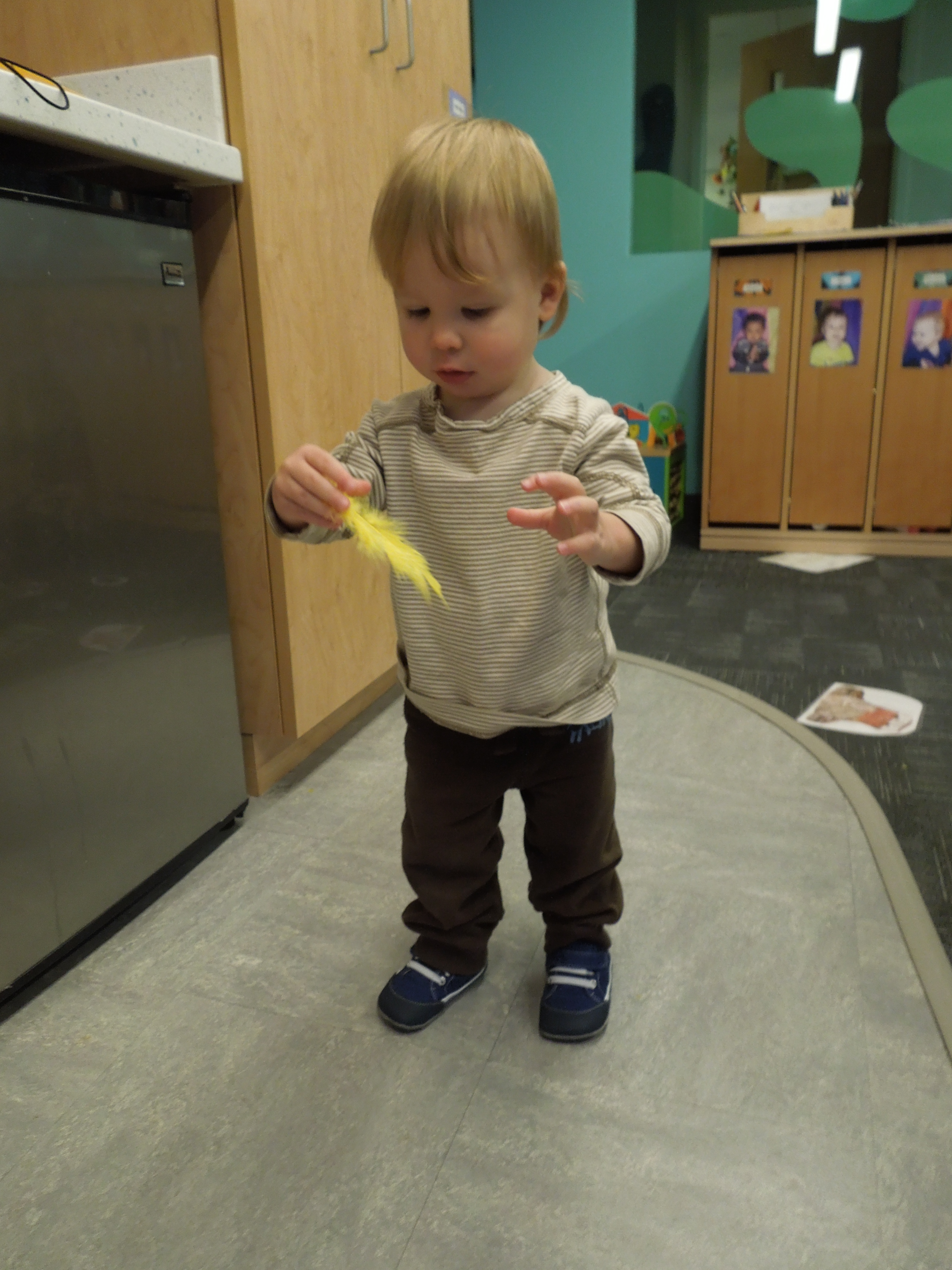In a word: Experimenting. In a reflection on our classroom, one of my teaching partners explained she likes “how we try new things and are not afraid of it.” It can be hard to experiment, because you need to find the balance between routine / stability and the change that comes with trying new things. Both routine and new experiences are vitally important to the mobile infants; it is the challenge of the teacher to make sure that the classroom has an appropriate balance of both for each individual child.