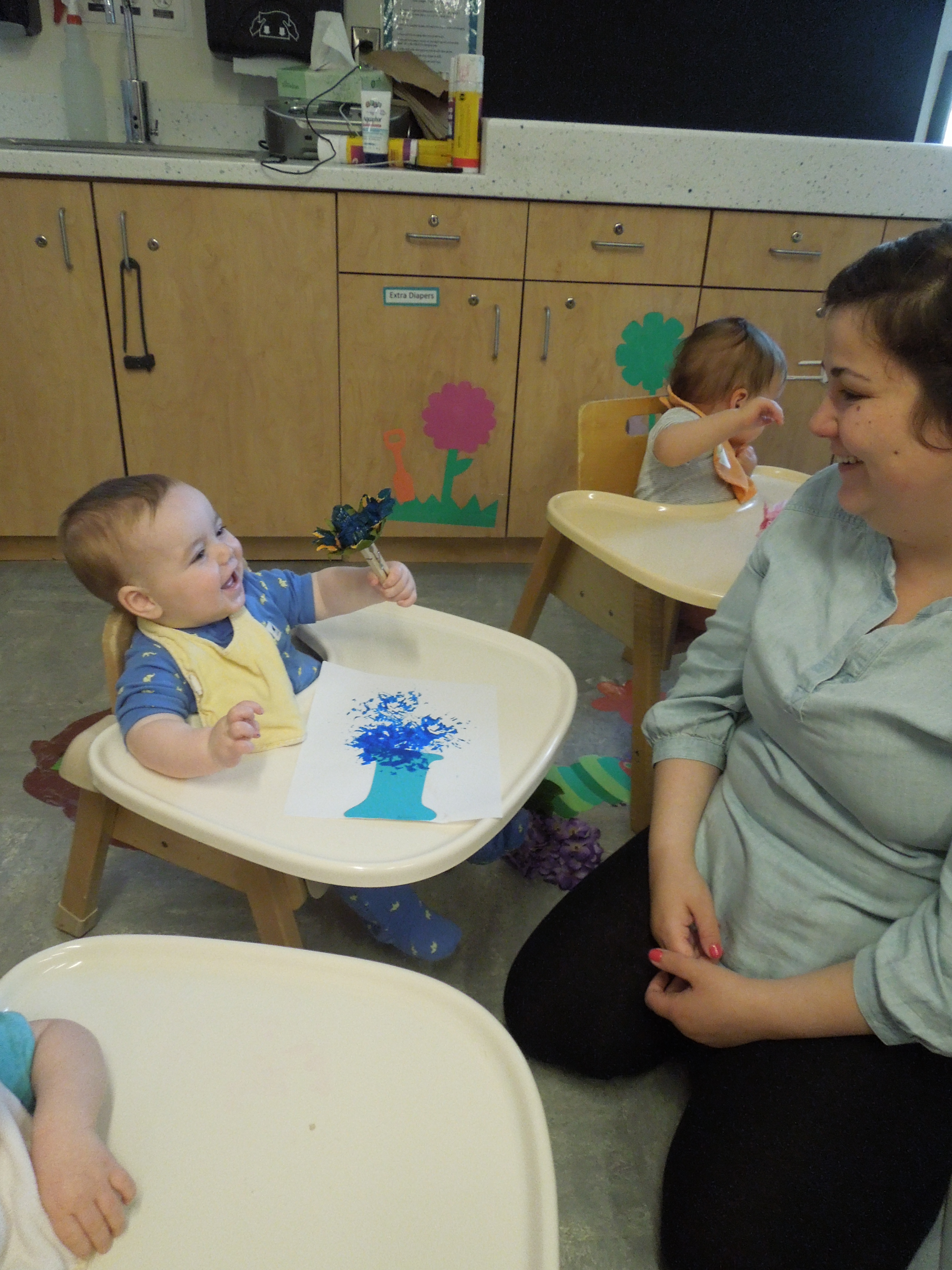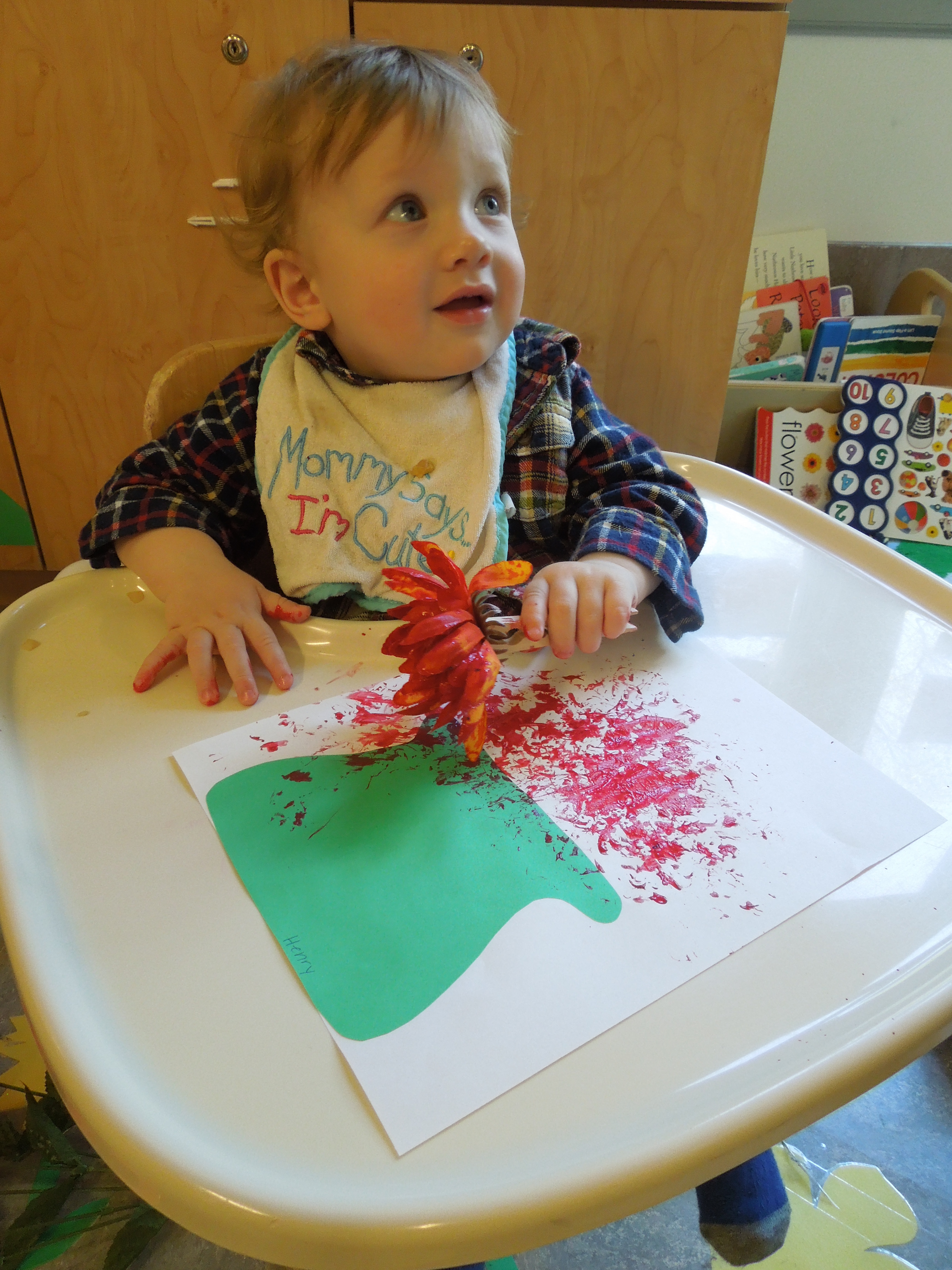 This week we are featuring Noel Ulmer, Nessa Moghadam, and Katy Martins. Inspired by the spring weather and blooms, their infant class decided to paint with flowers. Below you will find images from their painting experiences with flowers.
