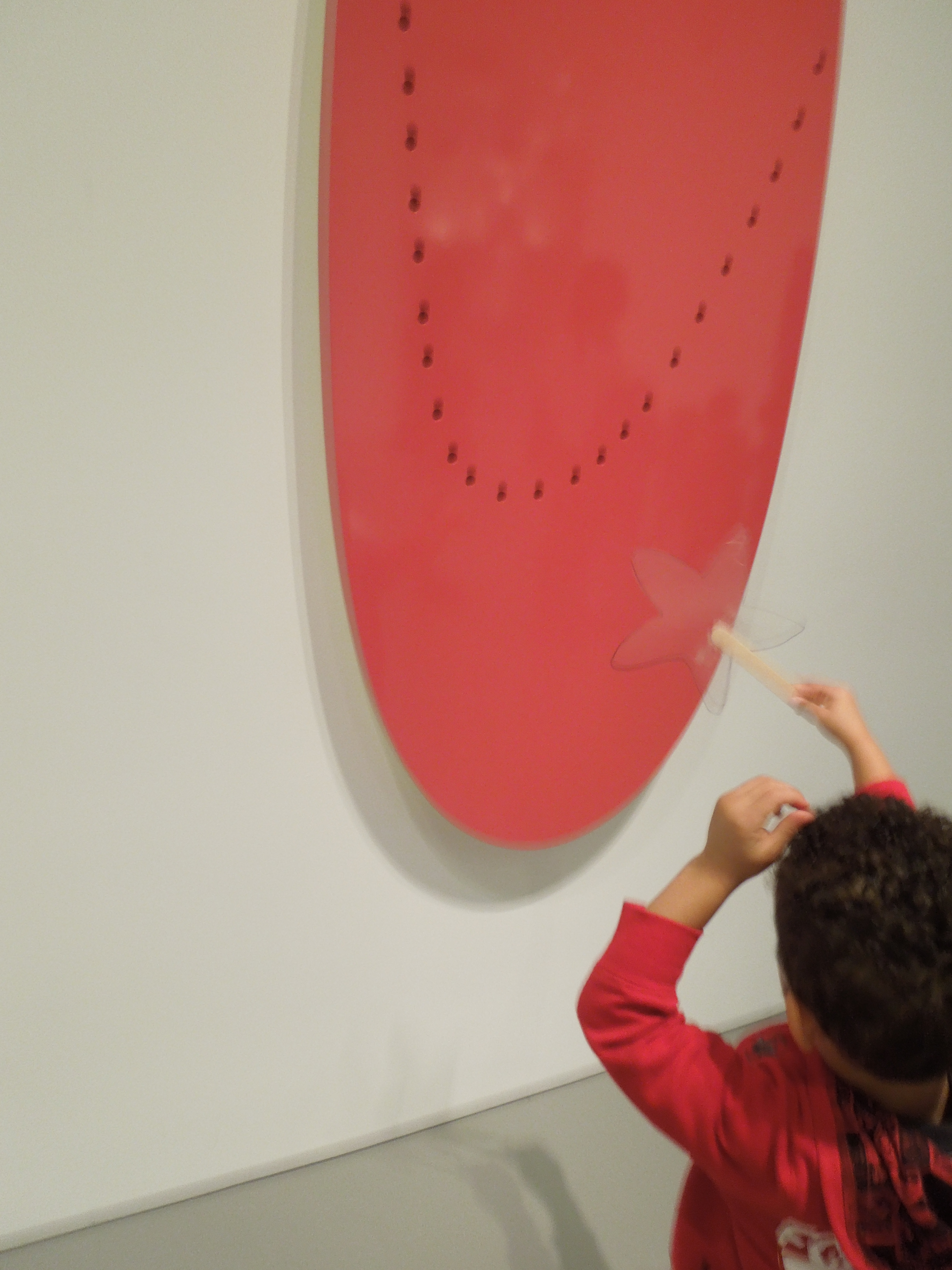 After learning all about sea stars it was time to fill their clear stars with art from the Hirshhorn collection. Tina had pre-cut clear star shapes out of transparency paper and attached them to popsicle sticks. They then wandered through the gallery picking pieces of art to fill their star.