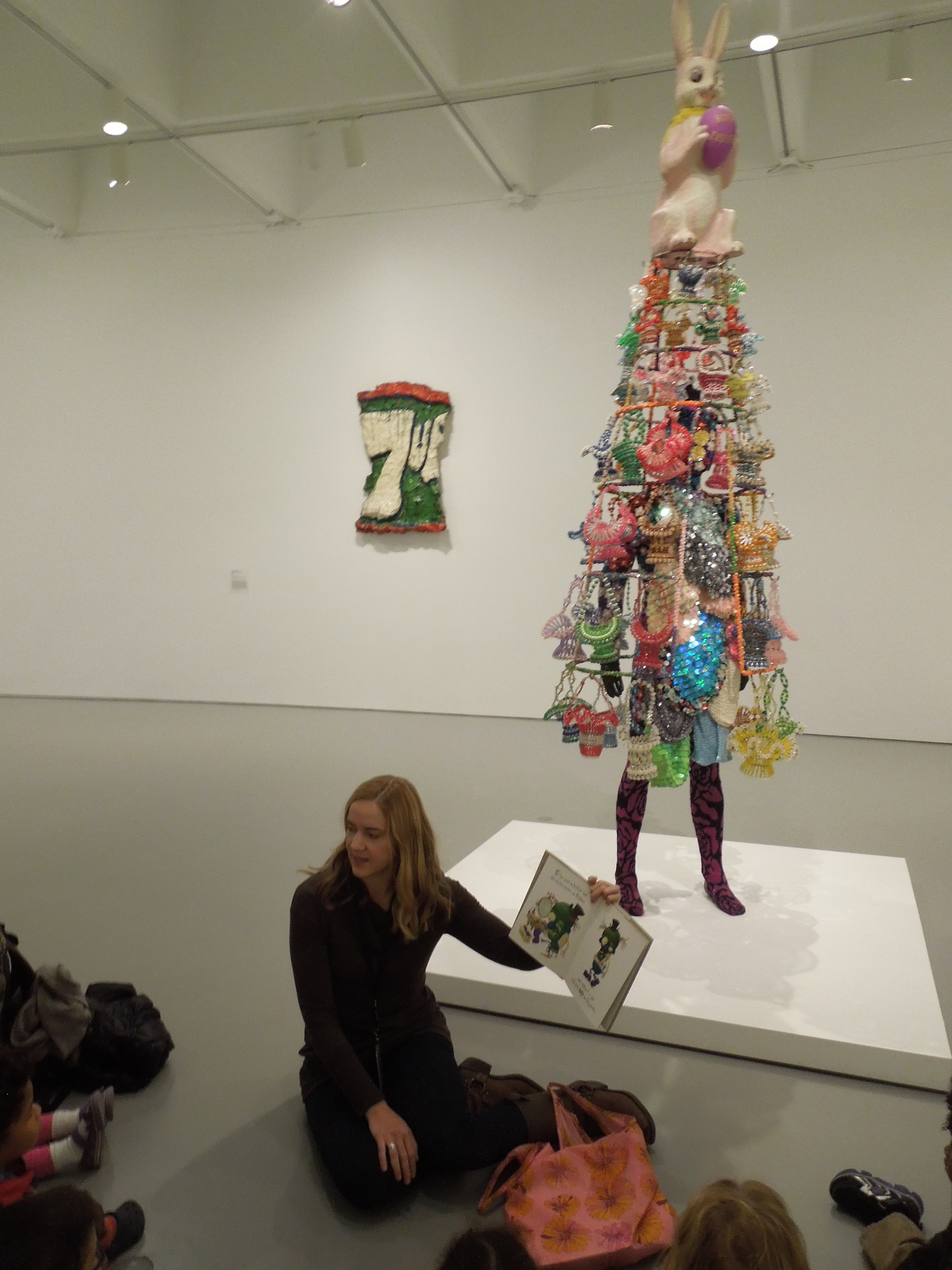 The Soundsuit is very bright and colorful, which makes it visually enticing to all audiences. The children were especially mesmerized and very excited to describe what they saw! Erin listened to the comments and explained how the artist used different objects to piece together the suit similar to how Frankenstein was created. She then read the class Frank the Monster That Wanted to Dance by Keith Graves which is a wonderful story that makes Frankenstein seem very approachable.