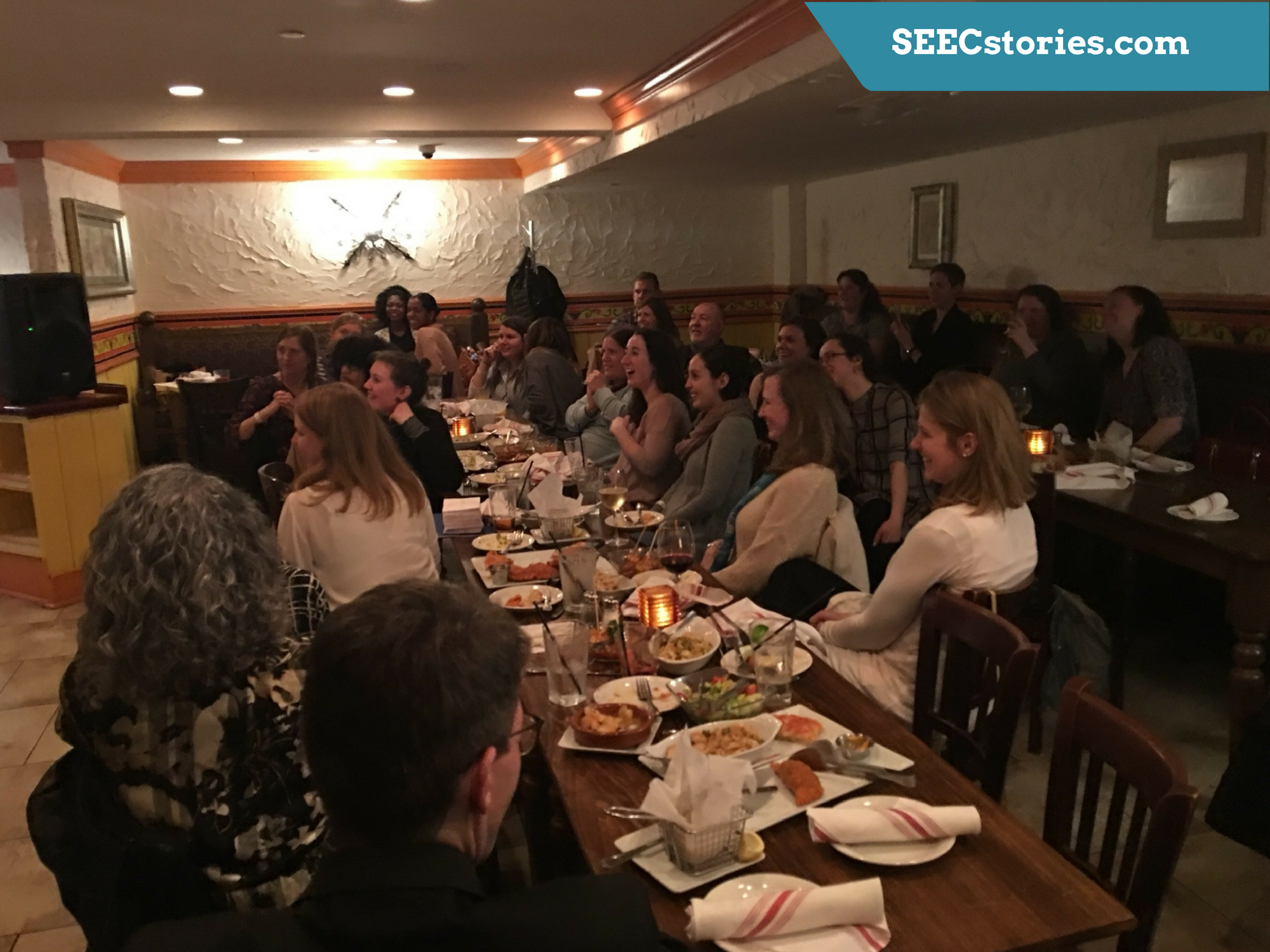 Every year, SEEC hosts a dinner in honor of its educators. This annual event takes place at a local restaurant where we enjoy food, drink, and each other’s company. In addition to the festivities, we also use a portion of the evening to honor our faculty. This year, our center directors took a moment to individually recognize each of SEEC’s educators. Though our administrative team feels that SEEC is an amazing school because of its unique approach to learning and location on the Smithsonian campus, they also know that at the heart of this school are the amazing individuals who spend their days loving, teaching, and nurturing our students.